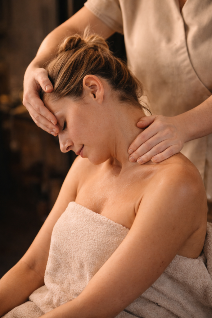 Enfocado en cuello, hombros, trapecios y espalda. Muy pedido para quienes pasan horas sentados, manejan mucho o viven con tensión en la nuca.